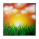 Schöner Sonnenaufgang über einem Grasfeld Fliese