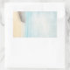 Sticker mit einem schönen rustikalen Bild. Feine Farben von hellblau, sandig braun und sanft weiß. Eine Strandlandschaft mit einem Boot am Ufer mit einem Fischernetz, das an der Seite hängt. Ein eleganter, schäbiger Look.