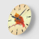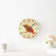 Schöne Uhr der Vogelwand. Rötlicher Vogel, der auf einem blühenden Baum sitzt. Vögel bringen uns immer Freude!