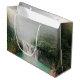 Eine Geschenktasche mit einem phantastischen Foto. Ein Blick aus der Luft auf einige atemberaubende Wasserfälle, umgeben von einem üppig grünen Wald von Bäumen und Bergen.