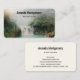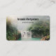Visitenkarten mit einem phantastischen Foto. Ein Blick aus der Luft auf einige atemberaubende Wasserfälle, umgeben von einem üppig grünen Wald von Bäumen und Bergen.