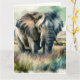 Eine leere Karte mit einem afrikanischen Savanne Elefant in Afrika oder Asien, der in den Wiesen spaziert. Hübsche ai Illustration im Aquarellstil.