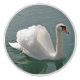 Hübscher weißer Schwan, der in grauem Wasser schwimmt.