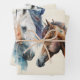 Umhüllungspapier mit einer schönen Aquarell gezeichnet. Mit einem Paar Pferde, braun und weiß. Kopf und Hals sichtbar mit tropfender Farbe entlang der Nackenbasis. Südwestvibe.