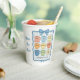 Kaffeemaschine mit einem wunderschönen, blauen Gingham-Muster mit Kaffeetassen, die mit der Frucht des Geistes beschriftet sind. Ein wunderbares Geschenk für Bibelstudium oder Kirche, um Freunde oder Familie mit einer Tasse Kaffee und einer Nachricht zu empfangen, "Dein Bestes" oder um ein eigenes zu kreieren.