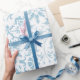 Schönes Blumenaqua und weißer Damast-Entwurf Geschenkpapier