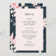 Das schöne Blumenmuster klassische Hochzeitsmenü zeichnet sich durch ein zartes botanisches Muster aus rot-rosa Blume und einen dunkelblauen Hintergrund aus.