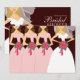 Die Braut und ihre Brautjungfrauen in rosa Kleider halten alle wunderschöne Bouquets von Blume in diesem schönen Design für ein modernes und trendiges Brautparty-Fest. Alle Veranstaltungsdetails sind auf der Rückseite, mit rosa Text auf einem dunklen Schokoladenboden. Ein modernes Duschdesign, das Spaß macht und elegant wirkt. Erhältlich in einer Vielzahl beliebter Farbschemata.