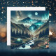 Eine wunderschöne ai Camping-Abbildung eines Zelt-Set neben dem Bach mit einem Berghang und der Nordlichter und Vollmond im Himmel.