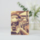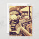 Ein bezauberndes Shoppingschaf im Retro-Stil macht eine Postkarte, um einem Freund einen kurzen Empfang zu schicken