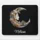 Mousepad mit einer schönen Abbildung. Ein weibliches Gesicht im Mond, umgeben von Blume.