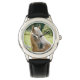 Uhr, Vintage Männeruhr mit schwarzem Lederarmband
