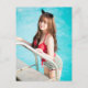 Schönes japanisches Mädchen am Pool Postkarte