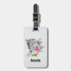 Ein Gepäckanhänger mit einer schönen Abbildung mit einem grauen, schwarz-weißen Leopardenportrait. Dieses hübsche Tier ist von einer tropischen Blume umgeben. Elegant, exotisch und schön.
