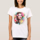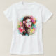 Schönes Mädchen mit rosa Blume weiß T-Shirt