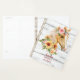 Schönes Palomino Pferd mit Sonnenblumen und rosa Blume Blumenmädchen Namen Planer Notizbuch Vorlage. Schönes Aquarellpferd, personalisiertes Geschenk für Pferdeliebhaber.