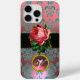 Eleganter cooler, Vintager Stil mit wunderschöner Rosa Rosa. Farbenfrohe, lebhafte Damaskenmuster ,Elegantes, elegantes und einzigartiges Design mit einem brillanten aquamarinen Aquablau 3D-Edelstein von Bulgan Lumini (c).Leicht zu individualisieren mit Ihren Initialen