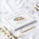 Hübsches Regenbogen abstrakt Hochzeitsgast-Buch mit zwei wunderschönen Arkaden über Ihrem Zeremoniedatum und Namen in Gold-Folie Skript. Dieser farbenfrohe Sake ist perfekt für ein klassisches LGBTQ-Paar, das am Nachmittag heiraten wird.