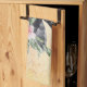Ein Küchentuch mit einer schönen Abbildung eines schwarzen Pferdekopfes mit einer extravaganten Blumenverzierung am Hals. Elegante und klassische Tiermalerei. Der Hintergrund hat ein extravagant abstraktes Design in hellgelber Farbe mit Imitaten goldenen Flecken.