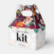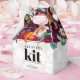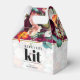 Ein elegantes und extravagantes Gastgeschenk Hochzeit Box Erholung Kit Design mit einer Mischung aus schönen Sommergeburten auf einem weißen und magentafarbenen Hintergrund und individuell anpassbarer schwarzer Typografie auf einem transparenten, weißen und goldenen Rahmen Hintergrund.