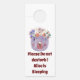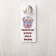 Personalisiertes schönes Tier mit Blume, weißer lila Türklammer für lila Liebhaber. Adorable lustige niedliche Kinderzimmer Türhänger für Mädchen. Auf der Vorderseite ist weißer Hintergrund mit einem niedlichen Baby-Tier und Text in lila und auf der Rückseite ist ein geeignetes lila niedliches Blumenmuster.