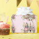 Niedliches Viktorianisches Vogelhaus mit Türmchen, rosa und blauen Blumen und gewundenen Weinreben. Schönes feminin rosa und weiße Burg Vogelhaus.