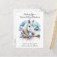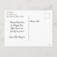 Personalisierte Weihnachtspostkarte. Hübsches, weißes, wasserfarbenes Pferd hinter einem rustikalen Zaun mit einer Scheune im Hintergrund an einem schneebedeckten Wintertag.