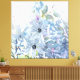 Feine blaue Blumen und grünes Blattwerk bilden den Mittelpunkt der Komposition, mit subtilen, rosafarbenen Beeren, die überall verteilt sind. Die Ästhetik ist sanft vermischt und schafft ein visuelles und ruhiges Erlebnis.