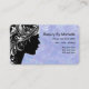 Einzigartige Schönheits-Visitenkarteschablone in einem eleganten Entwurf einschließlich Modehaar-Modellgraphik mit Blumenmuster im Hintergrund mit Textplan, den Sie für einen Friseur leicht online besonders anfertigen können, Maniküristen oder Schönheits- und Modegeschäft.