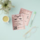 Eine Rose goldener Farbverlauf mit Glitzer-Tropfen, schwarzer Schere und Wimpern. Auf der Vorderseite: Der Text: Preisliste. Personalisieren Sie Ihren Namen und Ihre Adresse und fügen Sie diese hinzu. Erstellen Sie Ihren eigenen QR-Code, indem Sie Ihre URL zu Ihrer Website oder zu Ihrem Social-Media-Konto hinzufügen. Zurück: Ihr Text, Preise.