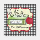 Magnet für einen Schulmedienspezialisten, der eine Abbildung einer Computermaus, eines grünen Buches und eines Apfels zeigt. Design liest "Media Specialist" und ist von einem roten Rahmen umgeben. Grauer Gingham Hintergrund. Personalisieren Sie Ihren Namen unter Design.