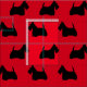 Wiederholen der Silhouette eines schottischen Terrierhundes mit rotem Hintergrund.