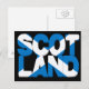 Postkartenbild von "SCOTLAND" in fett gedruckter Schrift, gemischt mit der Flagge von St. Andrew vor schwarzem Hintergrund