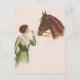 Vintages Kunstdesign einer Frau, die ihr Pferd sanft schimpft.