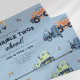 Feiern Sie den großen Tag Ihres kleinen Bauers mit diesem lustigen Twos Construction Truck Birthday Einladung! Mit farbenfrohen Bauvehikeln und spielerischer Typografie lädt dies die Sets zu einem lebendigen und abenteuerlichen 2. Geburtstagsfest ein. Dieses Design ist perfekt für Kinder, die LKWs Liebe und den Schmutz graben. Es ist sowohl spielerisch als auch lebendig und macht jeden Geburtstagsbash unvergesslich.