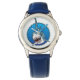 Kinderuhr aus Edelstahl mit blauem Lederarmband