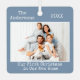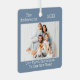 Moderner, trendiger Schreibstil Minimalistisch, unsere erste Weihnachtsfeier in unserem neuen Zuhause Foto-Ornament - dusty Blue Background