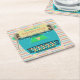 Diese hübschen Papiergetränk-Untersetzer sind für kreative Verfasser/Novelists/Journalisten und jede mögliche andere Art des Autors oder des Fans der Vintagen Schreibmaschinen. Die retro Schreibmaschine 60s-style wird in den Schatten des Türkisblaus gezeichnet und ein Herz in der Mitte hat. Der Hintergrund hat ein Muster, das von den bunten Tintenstiften gemacht wird.