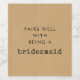Ein minimalistisches und Vintages Design für Ihr Hochzeitsgeschenk: Wählen Sie diese Retro-und dennoch moderne Hochzeitssuite mit einem Schriftart für Schreibmaschinen und einem kraftvollen Hintergrund. "Pairs well with being bridesmaid" Custom wine label! Ein origineller Vorschlag für eine Brautjungfrau, der perfekt für ein Set in einer Brautjacke geeignet ist.