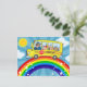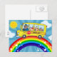 Kunstwerke gekauft. Ein Schulbus voller glücklicher Kinder, die über einen Regenbogen fahren.
