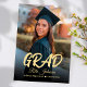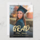 Elegante und moderne Klasse von 2024 Black Gold High School Abschluss Einladung für Graduate und Abschluss Ankündigung. Die Einladung enthält ein Foto als Kernstück mit "grad" Sprichwort in fett geschriebener Kalligraphie, Gold und Schwarz-Farbe Thema und Glitzer-Effekte auf der Rückseite. Perfekt für Uni-Abschluss Ankündigung, High School Abschluss Ankündigung, Abschluss 2024, Klasse von 2024, Uni-Abschluss und mehr.
