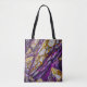 Ein abstraktes Design in Lila, Gold und Weiß, das einer felsigen Landschaft ähnelt, ziert diese Umhängetasche.