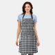 Diese Schürze wird wie in einem Gingham-Druck in Schwarz, Grau und Weiß dargestellt. Farbe Schwarze Streifen Schwarz Passen Sie dieses Objekt an oder kaufen Sie, wie es ist. Sie können eine andere Gurtfarbe wählen. Bild