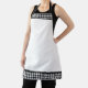 Diese Schürze wird wie in einem Gingham-Druck in Schwarz, Grau und Weiß dargestellt. Farbe Schwarz/Weiß Streifen Schwarz Passen Sie dieses Objekt an oder kaufen Sie, wie es ist. Sie können eine andere Gurtfarbe wählen. Bild