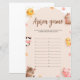 Diese bezaubernde Baby-Duschspielkarte besticht durch ein charmantes Landtier mit niedlichen Illustrationen einer Kuh, eines Hasen, Küken, Pferd und Schweins, umgeben von fröhlichen Blume und einer lächelnden Sonne. Die sanften Pastellfarben und das skurrile Design schaffen eine warme und einladende Atmosphäre. Besuchen Sie unseren Shop, um unsere gesamte Brown Niedlich Farm Animal Kollektion zu sehen.