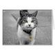 Schwarzweiss-Fotografie einer grauen und weißen Katze mit grünen Augen und des Goldumbaus an seinem Kragen, der "Schuss" liest. Großes Geschenk für selbst oder den Katzenliebhaber in Ihrem Leben.