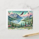 Hier finden Sie die Ansichtskarte für den Happy Earth Day mit einer majestätischen Bergkette mit schneebedeckten Gipfeln, dichten Kiefernwäldern und einem ruhigen See, der die Landschaft widerspiegelt. 🌿 🌎 ✨ Die Szene umfasst steil ansteigende Adler, weidende Elche und neugierige Füchse, die ein majestätisches, von der Natur inspiriertes Ambiente schaffen. Der Text "Protect Our Planet!" ist ein elegantes, fließendes Skript mit einer Aquarelltextur,