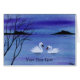 Die Grußkarte wird von einem Aquarellbild zweier hübscher Schwäne im Dämmerlicht des Abends geschmückt. Passen Sie den Text an, indem Sie ihn selbst in Anzug umwandeln!