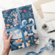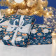 Schwäne, Fische, Blume auf blauem Hintergrund. dek Geschenkpapier