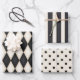Dieses Trio aus Wickelpapier zeichnet sich durch harlequin-, gestreifte- und polka-Punktmuster aus, die sich in den bedrückten Schwarz- und Vintag-Weiß-Farben wiedergeben.